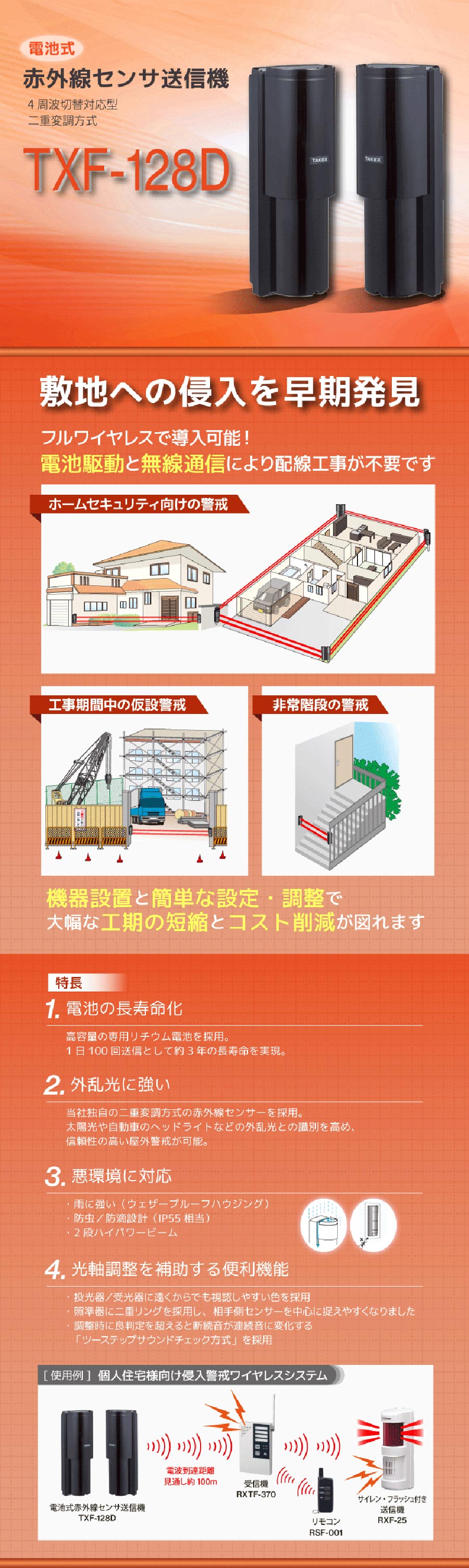 - 外周にTXF-128D(電池式赤外線センサ送信機)を設置。