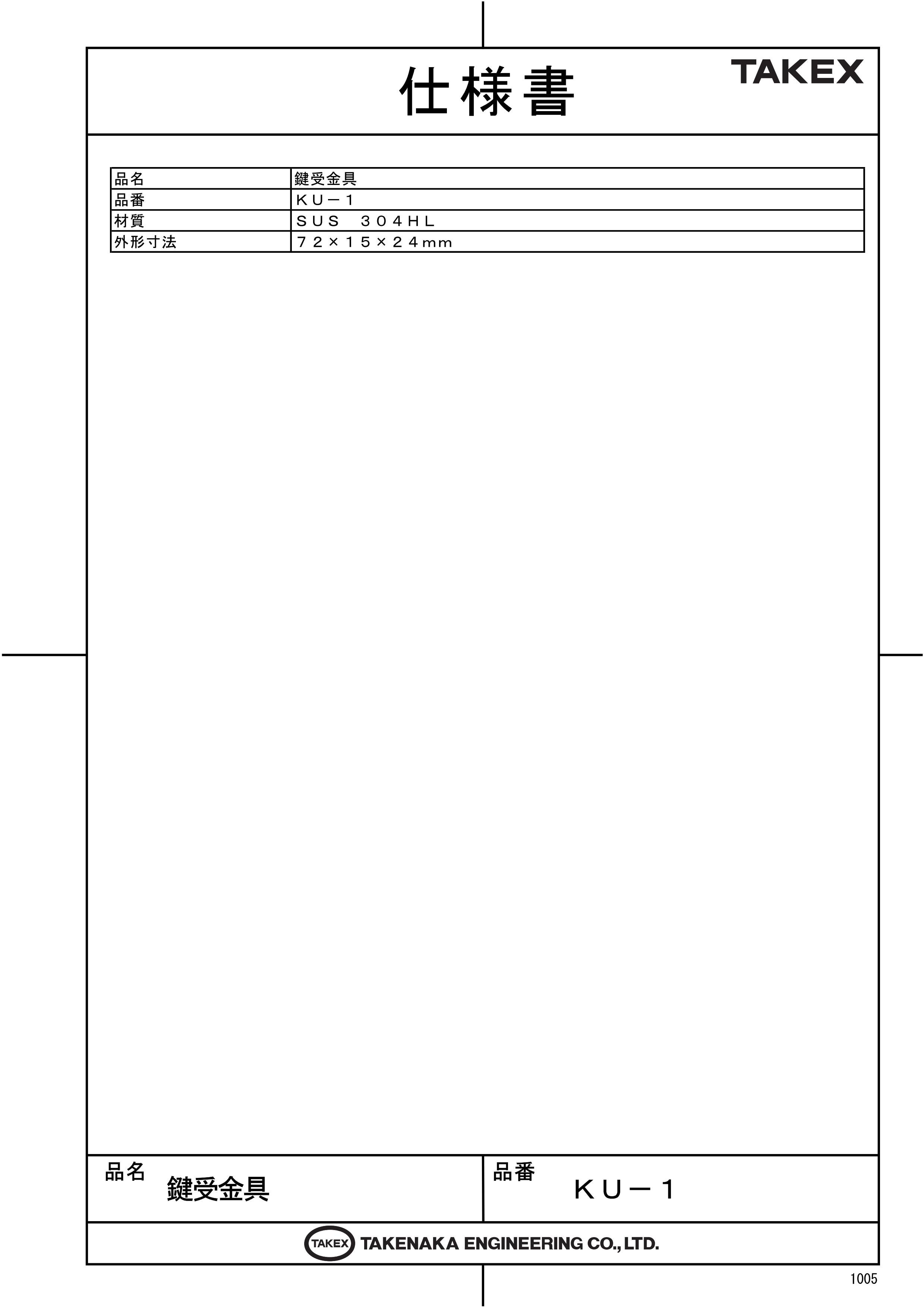 KU-1は、竹中エンジニアリング株式会社が提供する鍵受け金具です。SUS304(ヘアライン)素材を使用し、耐久性と美観を兼ね備えています。多様なガイドレールに適合し、100個単位での販売となります。
