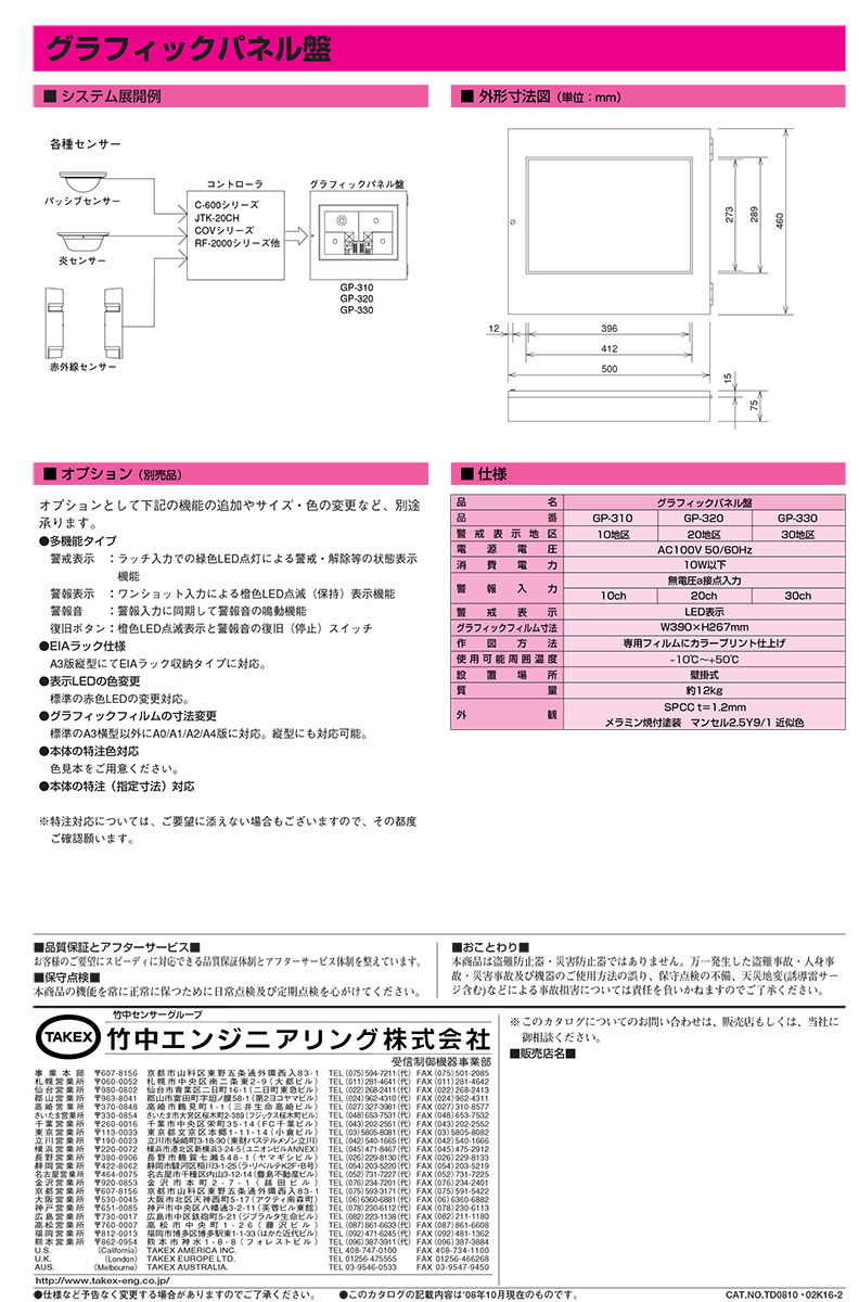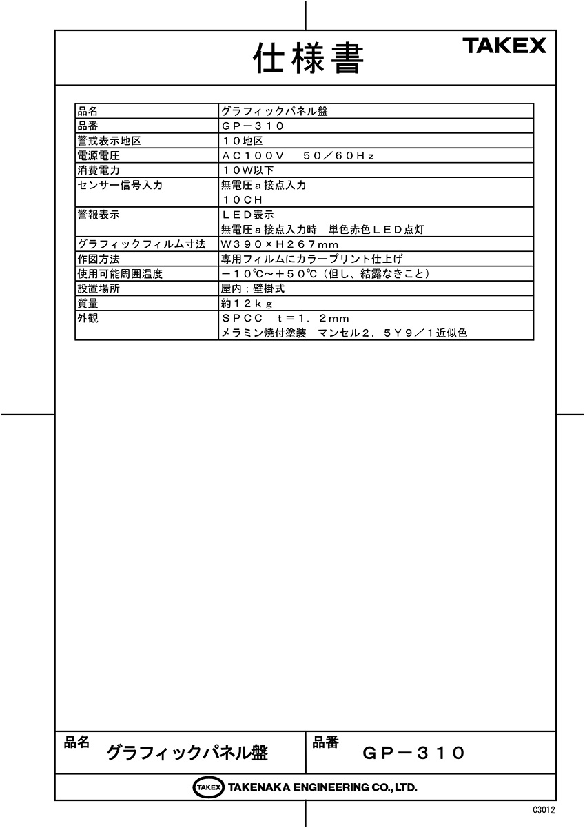 警戒セット表示ブザー無しグラフィックパネル盤 TAKEX 竹中エンジニアリング [GP-310Ver3]