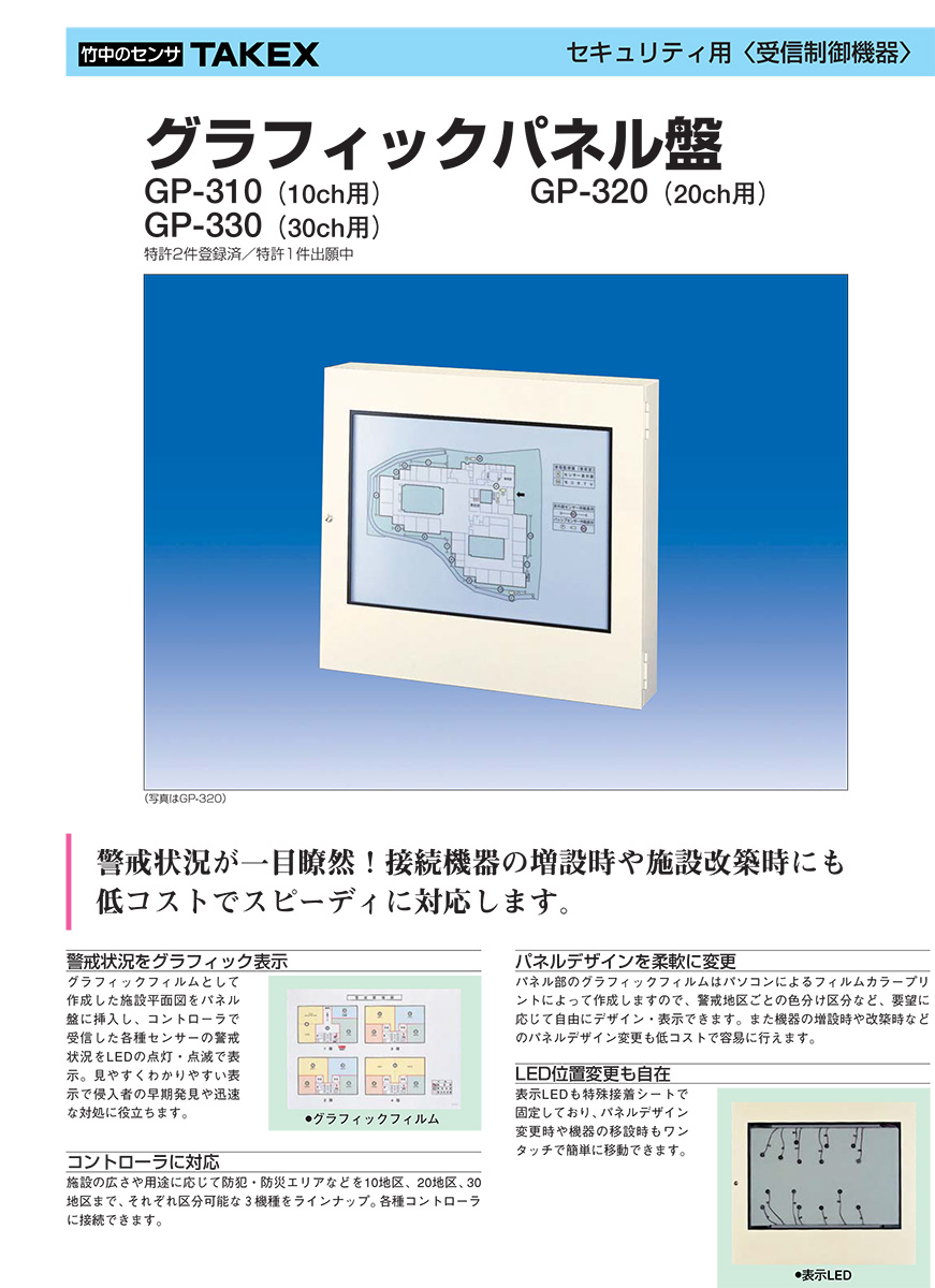 グラフィックパネル盤 20回線用 警戒状況が一目瞭然! TAKEX 竹中エンジニアリング [GP-320]