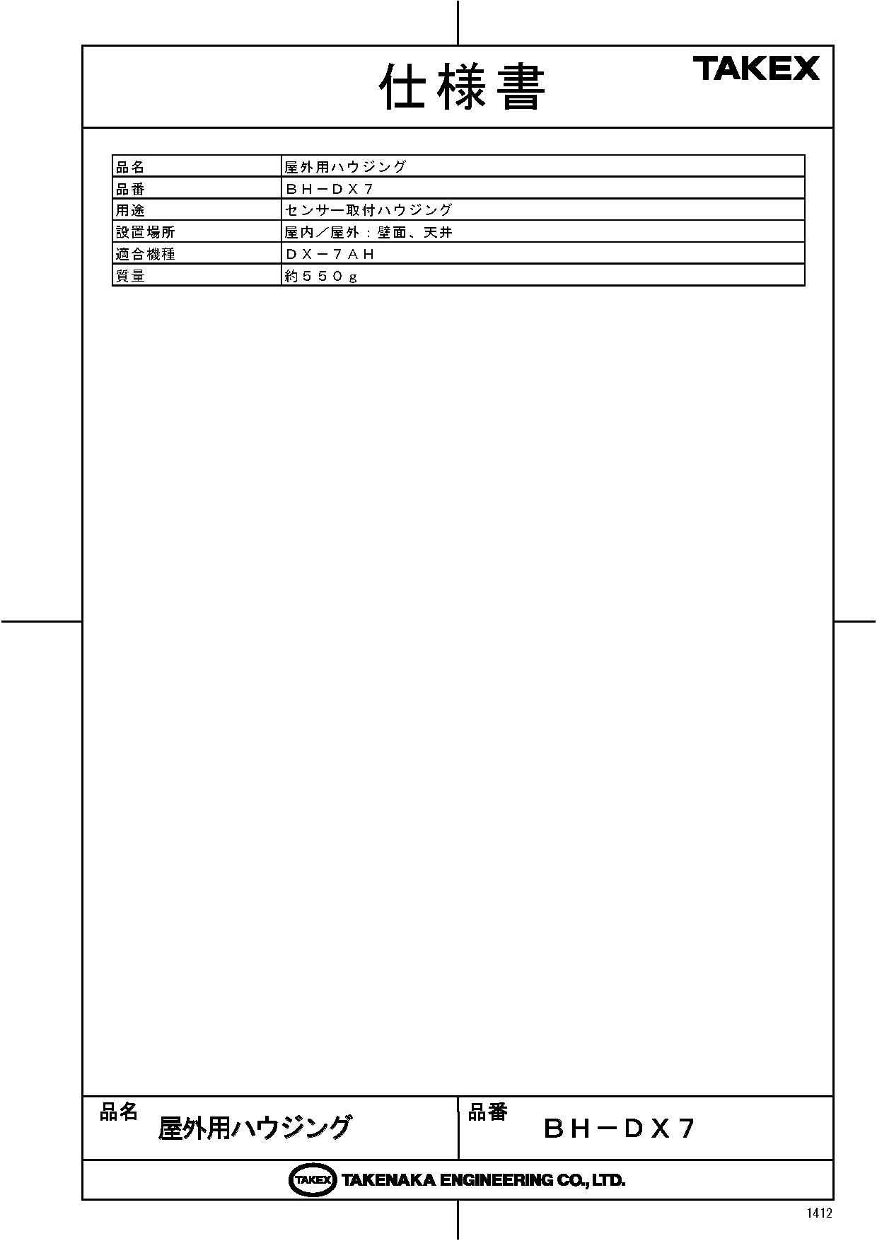 屋外用ハウジング TAKEX 竹中エンジニアリング [BH-DX7]