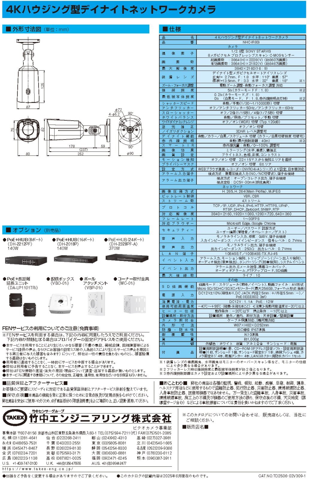 4Kハウジング型デイナイトネットワークカメラ TAKEX 竹中エンジニアリング [NHC-IR80i]