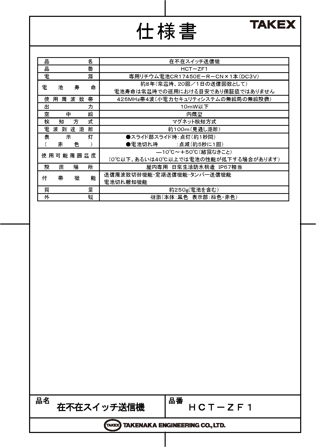 在不在スイッチ送信機 TAKEX 竹中エンジニアリング [HCT-ZF1]