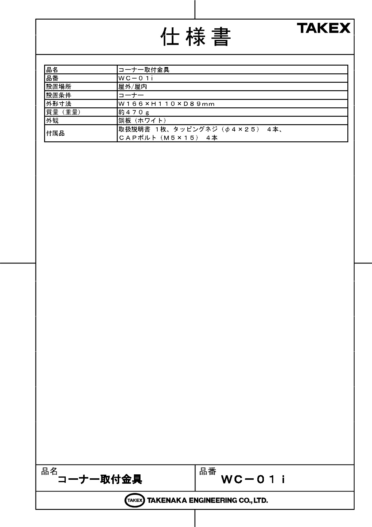 コーナー取付金具 TAKEX 竹中エンジニアリング [WC-01i]