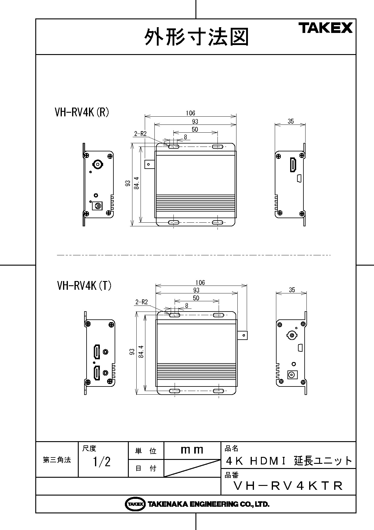 4K HDMI延長ユニット TAKEX 竹中エンジニアリング [VH-RV4KTR]