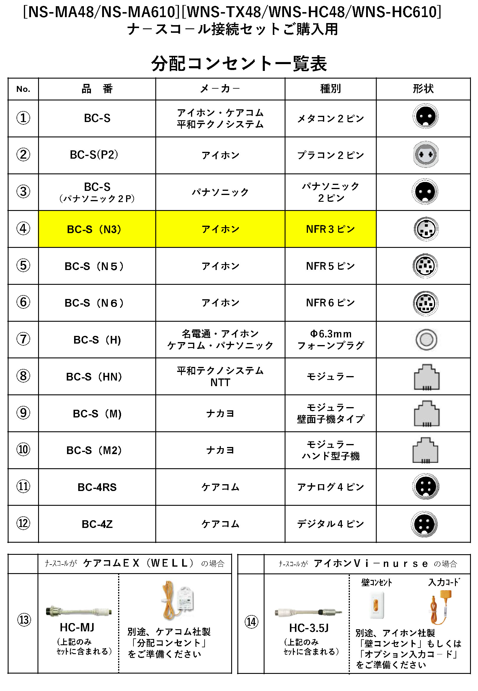 | 分配コンセント | BC-S(N3)(アイホン3ピン仕様、裏面磁石・フック付、リード1.5m) |