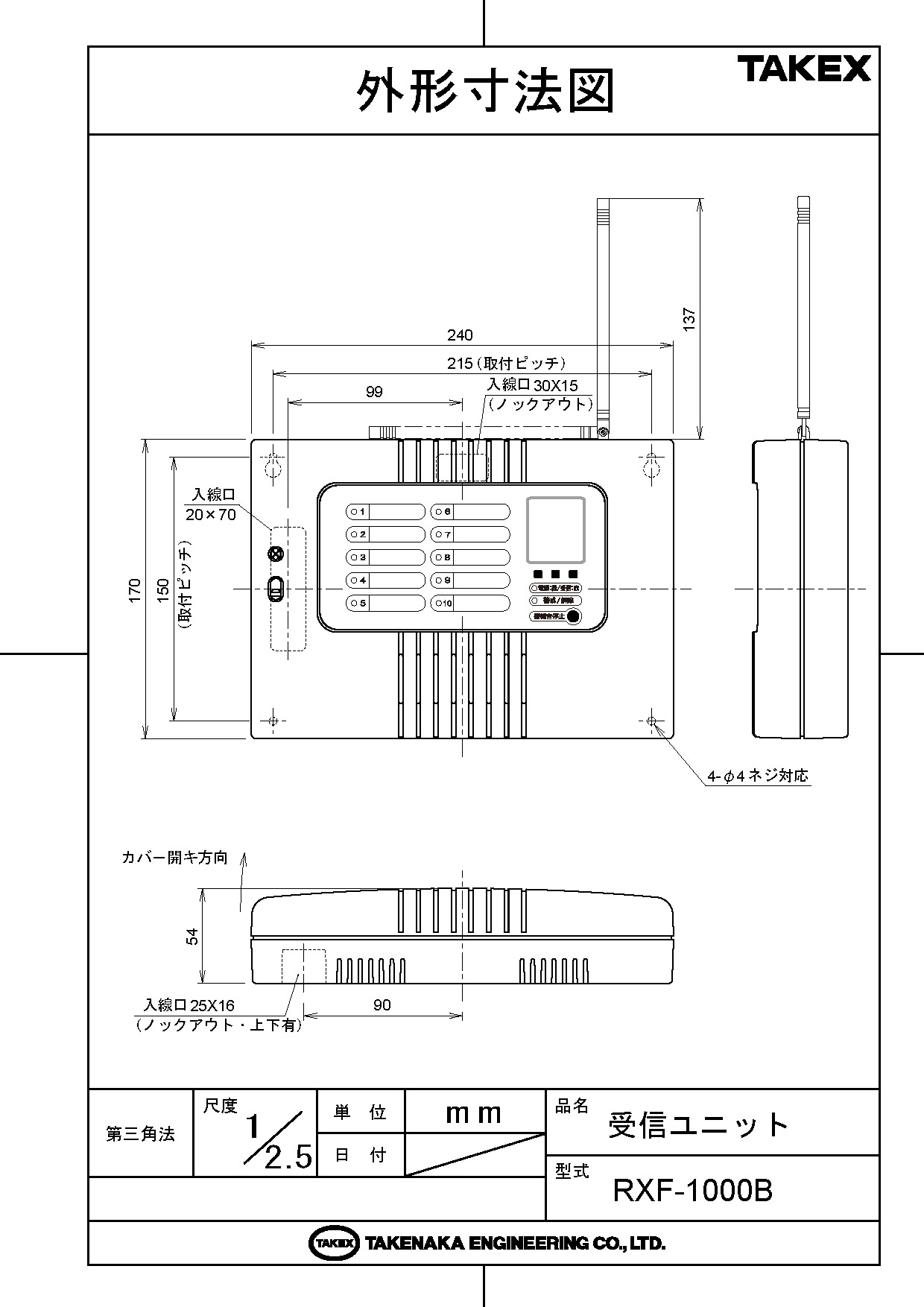 - 異常出力:タンパー/電池切れ/定期送信/環境の各異常出力を装備