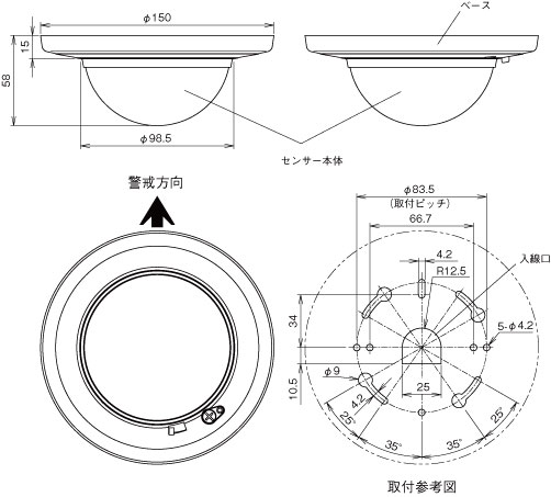 従来よりベース部をワイド化(Φ150mm)することにより、センサー取替え時に天井面の汚れ跡が目立つといった問題が解消。