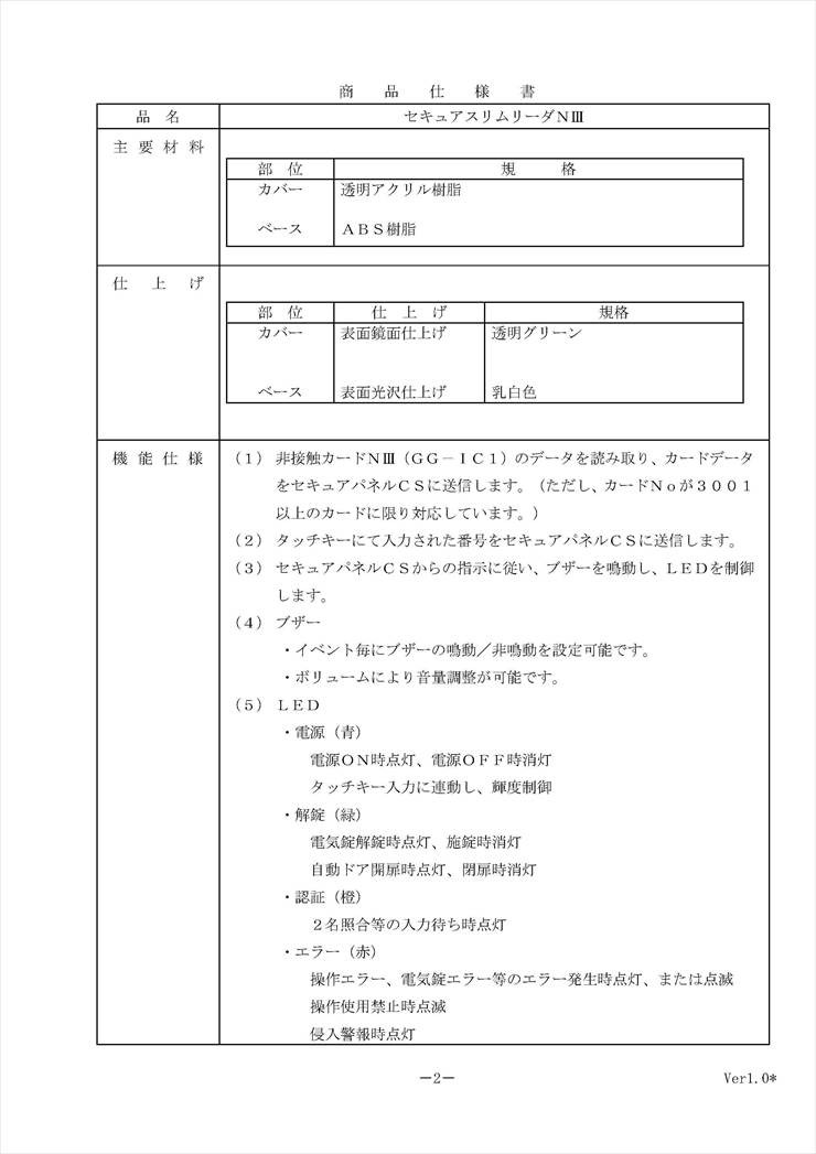 特長 ●FeliCa対応のリーダとISO15693 I-CODE対応のリーダの2種類からご選択頂けます ●標準1扉、オプション基板の追加で2扉までの制御が可能なシンプルなシステムです ●Webブラウザで管理する方式ですので専用ソフトが不要です ●操作方法は「テンキーのみ」「カードのみ」「テンキーとカードのアンド」の3パターンを混在して使用可能です ●登録人数4,000人、履歴情報20,000件をコントローラ内にメモリー可能です ●標準で無電圧接点4入力4出力(オプション基板追加により8入力8出力)を装備していますので、簡易的な機械警備、ローカル警備システムとしても使用可能です ●この他、カレンダー機能によるスケジュール解錠機能、在室管理機能(アンチパスバック)、2名照合機能(ツーパーソンルール)、ホールドアップ機能など、一般的に入退室管理システムに求められる機能の殆どを標準装備しています ●多機能型入退室管理システムGG-1シリーズとの連動・一元管理が可能ですので、将来的なシステム拡張にも柔軟に対応可能です