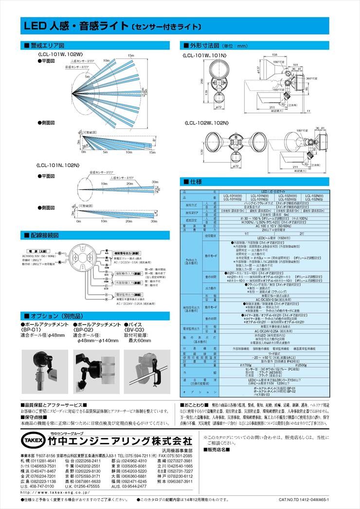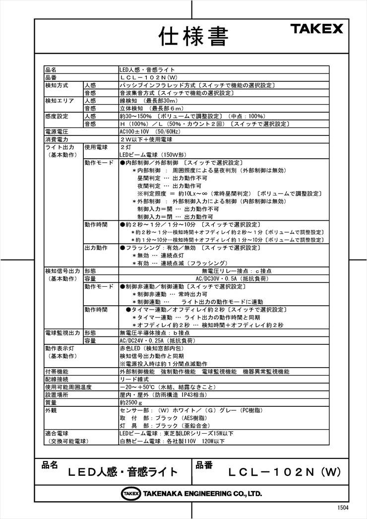 LCL-102N(W)は、ビーム電球150W相当の高性能LED電球を搭載し、人感センサー・音感センサーを搭載した多機能プロ仕様ライトです。エントランス、駐車場、倉庫、防犯対策など幅広い用途に対応。