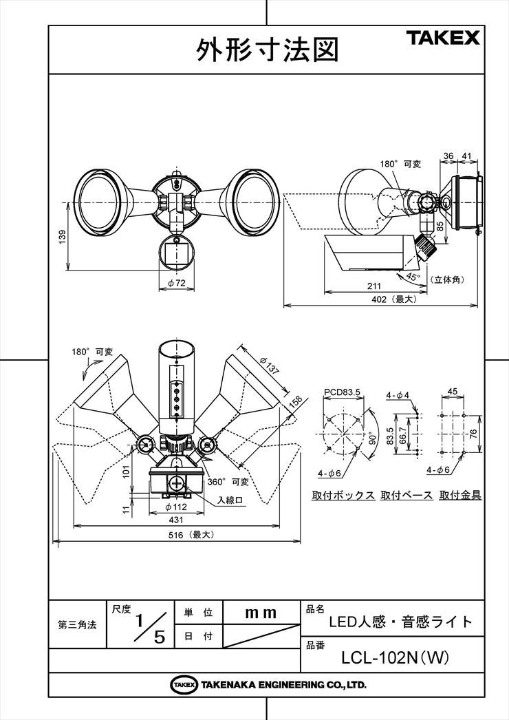 LCL-102N(W)は、プロ仕様の高性能LEDライトで、防犯対策や照明用途に最適です。